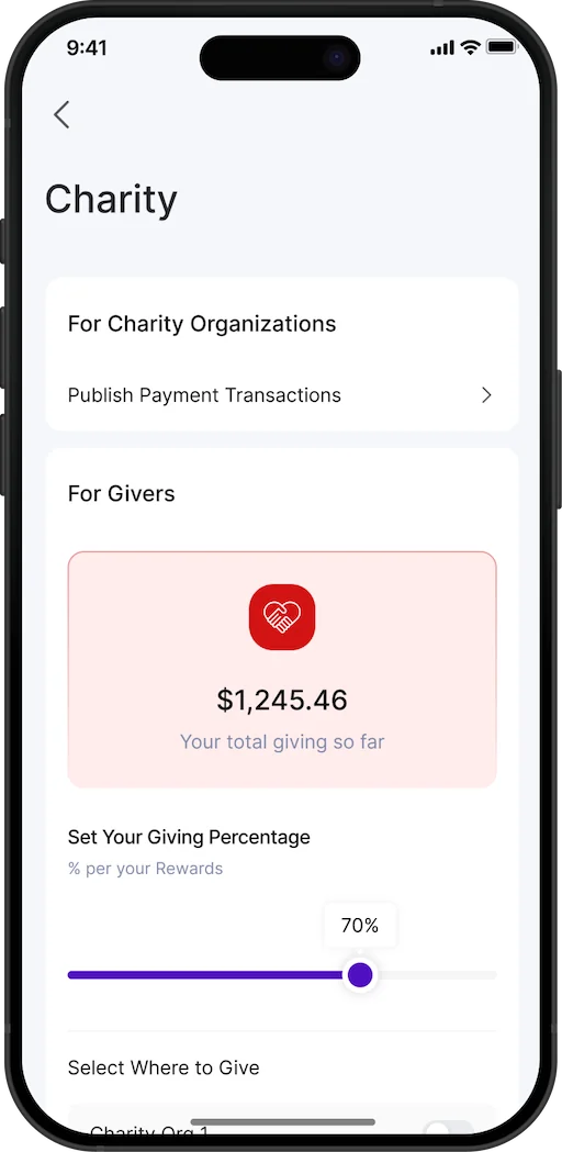 You can automatically donate your cashback and referral earnings. Just set a percentage and choose a charity organization.